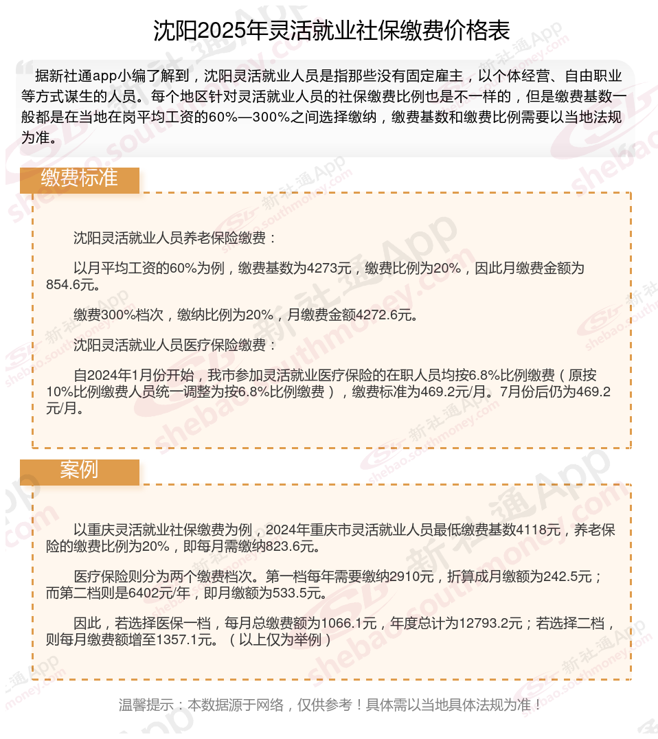 据新社通app数据显示,沈阳灵活就业养老保险缴费基数2024-2025年最新标准如下: