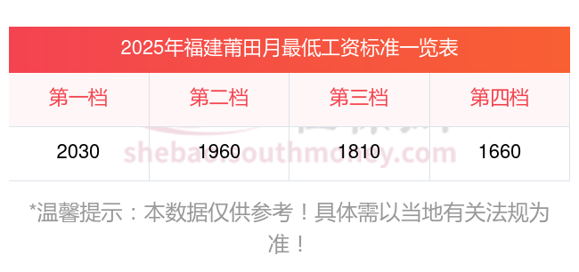 福建莆田最低工资标准是多少?福建莆田最低工资标准如下: