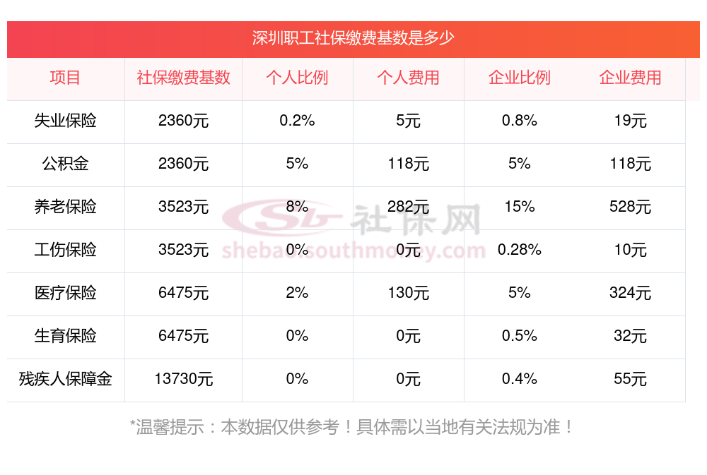据新社通app小编了解到,2025年深圳社保缴费基数参照为3579.00,深圳社保缴费明细如下: