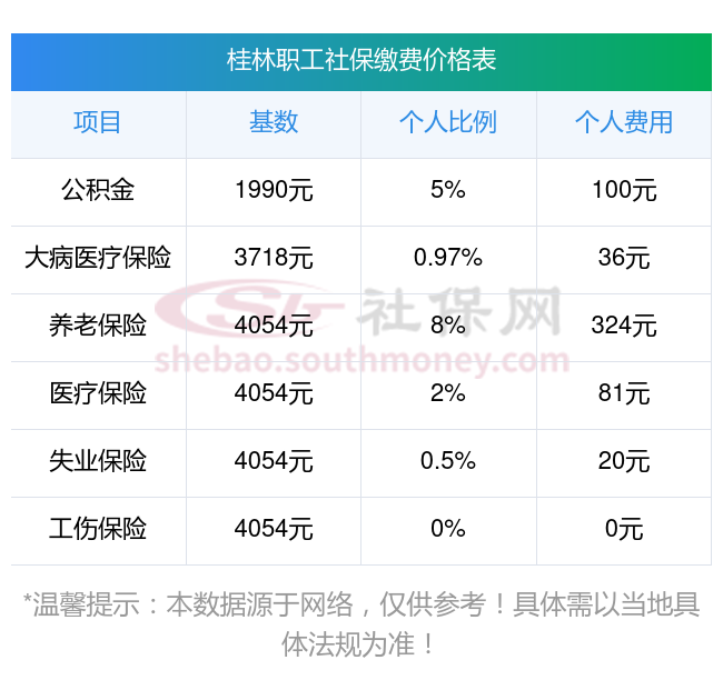 根据新社通app-社保缴费查询工具提供的最新数据,桂林社保缴费比例社保缴费比例包括以下几个部分:
