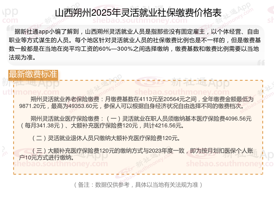 山西朔州灵活就业社保缴费标准来了 灵活就业社保最低要交多少钱?根据新社通app-社保缴费查询工具提供的最新数据如下: