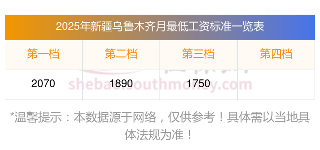 新疆乌鲁木齐最低工资标准是多少?新疆乌鲁木齐最低工资标准如下: