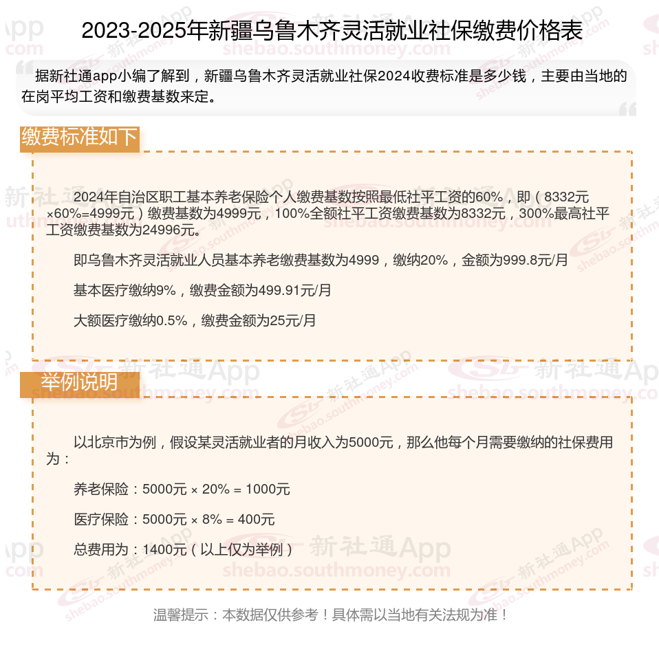 一、新疆乌鲁木齐灵活就业社保缴费价格表,2024-2025灵活就业社保养老保险一个月多少钱?