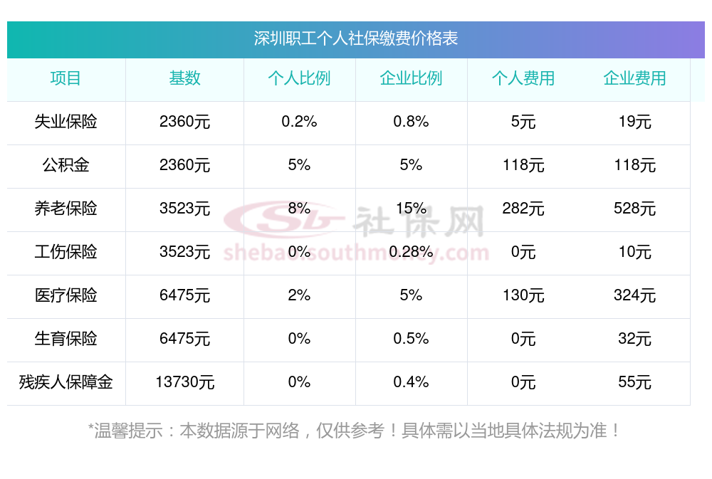 目前该深圳社保缴费基数最新参考为3579.00。(数据仅供参考)