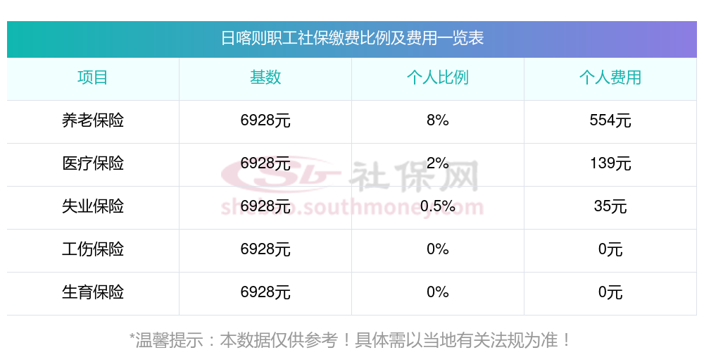 据新社通app显示,日喀则社保缴费基数标准2025年,(社保最低一个月要交多少钱)日喀则社保费用如下: