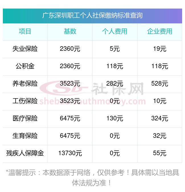 2025年广东深圳社保缴费多少钱?下表是2024-2025年广东深圳社保费用明细参考,新社通app-社保缴费查询工具提供的最新数据如下:
