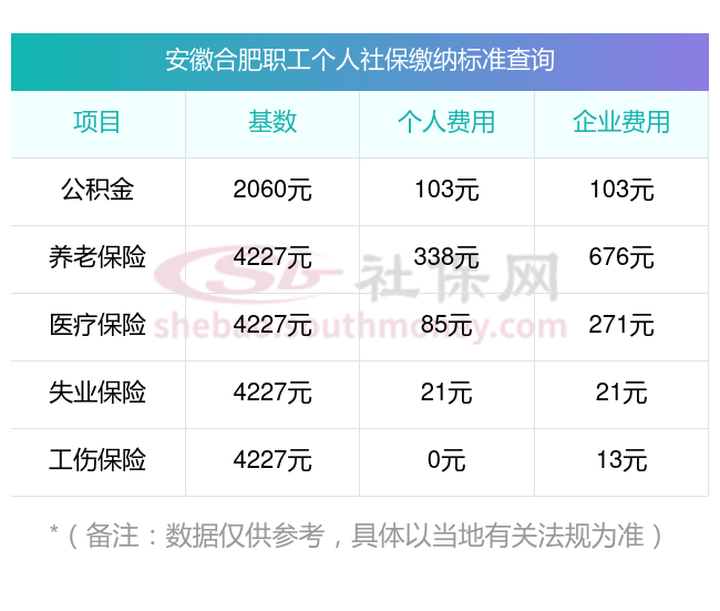 安徽合肥五险要扣工资多少钱一个月?安徽合肥缴费社保比例一览社保公司和个人各交多少?下表是2024-2025年安徽合肥社保费用明细参考,新社通app-社保缴费查询工具提供的最新数据如下: