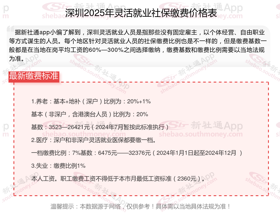 二、深圳2024年灵活就业社保缴费基数、比例最新消息