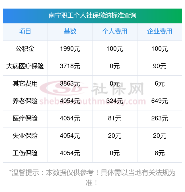 二、2025年南宁职工和公司社保各交多少钱?职工社保缴费多少钱一个月?