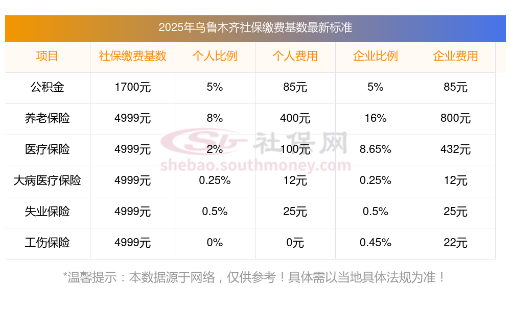 把职工上一年1月至12月全部工资性收入所得进行月平均得到的月平均额,确定为社保基数,该基数用于计算缴纳社会保险费的工资基数。那么,定了!2025年乌鲁木齐个人社保缴费基数及比例最新标准一览,下面随新社通app小编一起来了解具体内容。