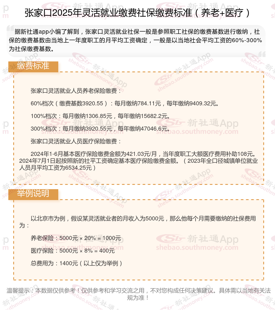 二、2025年张家口灵活就业社保缴费基数及比例最新消息