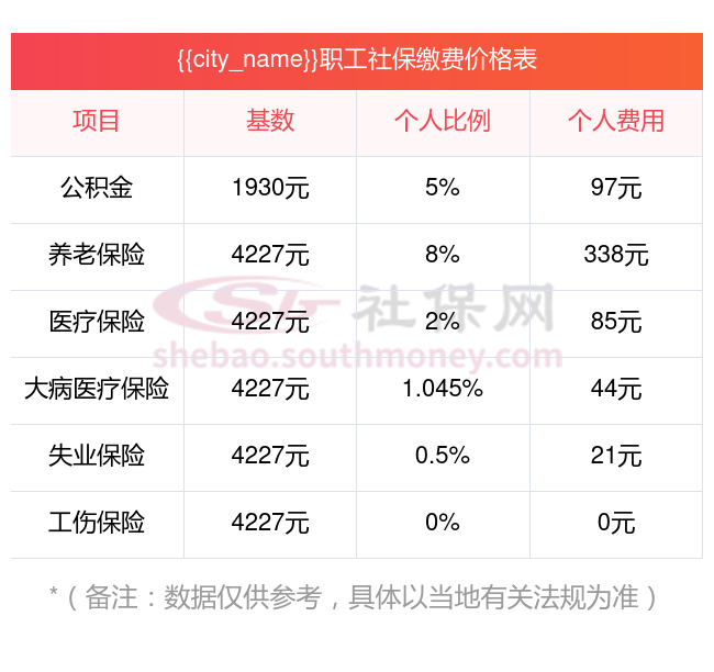 5、工伤保险:单位缴费比例为0.2%-1.9%,个人不用缴纳任何费用。