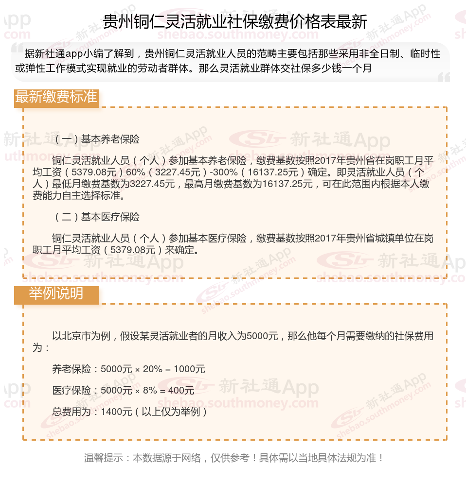 二、2024年贵州铜仁灵活就业社保缴费标准表 贵州铜仁灵活就业社保多少钱一个月?