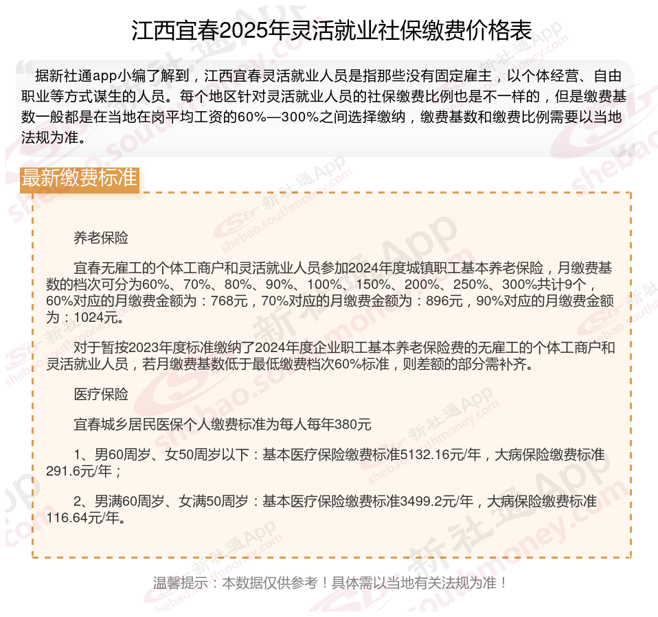 二、江西宜春2024年灵活就业社保缴费基数、比例最新消息