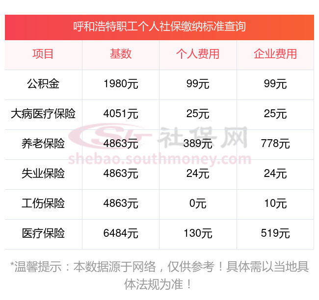 据新社通app显示,呼和浩特社保缴费基数2025年标准,(社保最低一个月要交多少钱)呼和浩特社保费用如下: