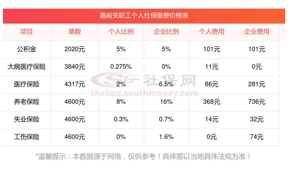 据新社通app显示,嘉峪关社保缴费基数2025最新标准如下: