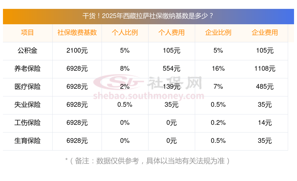 据新社通app小编了解到,2025年西藏拉萨社保缴费基数参照为3579.00,西藏拉萨社保缴费明细如下: