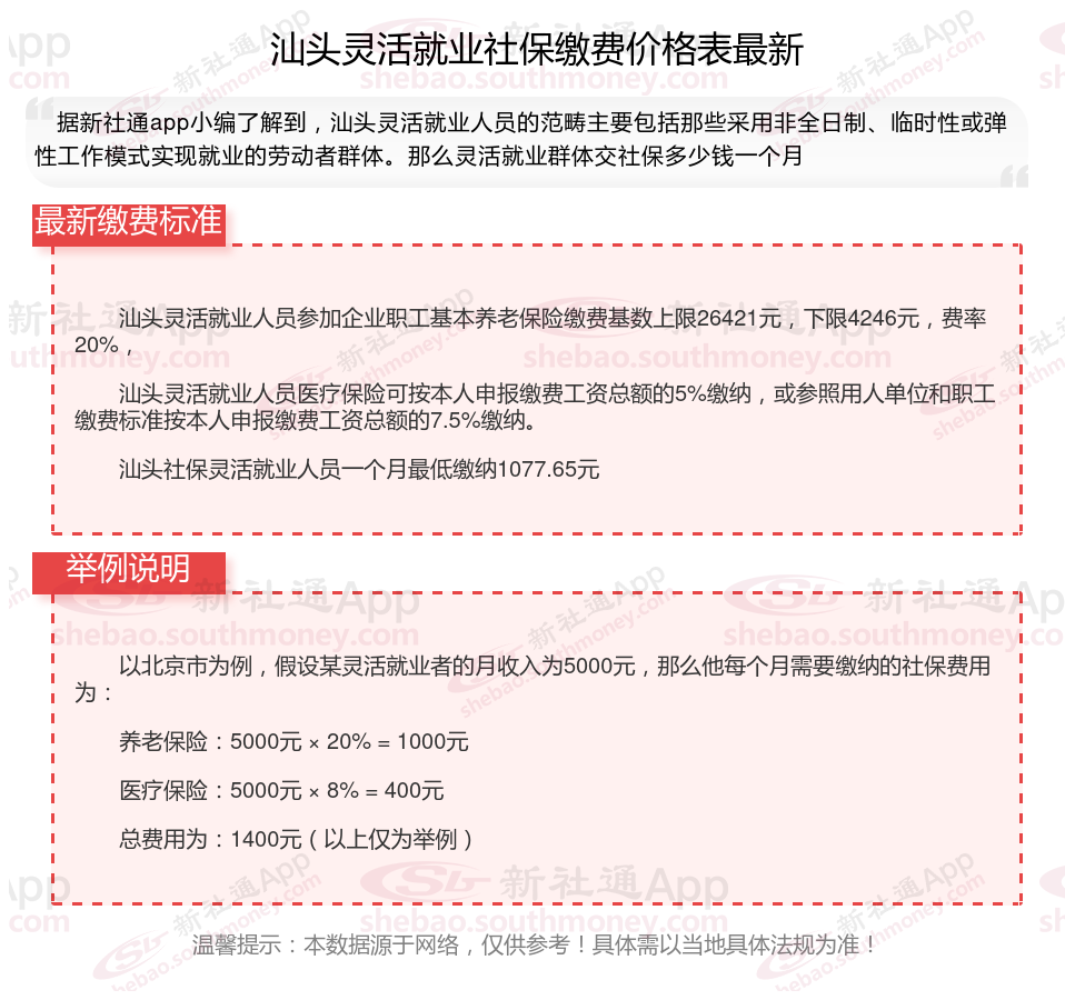 一、2025年汕头灵活就业社保缴费基数、比例最新消息
