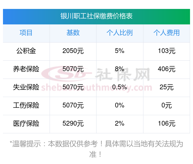2025年银川社保缴费价格最新是多少钱一个月??如下:
