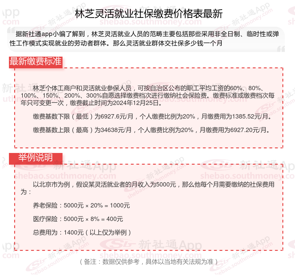 一、2024-2025年林芝灵活就业社保缴费标准表 林芝灵活就业社保多少钱一个月?