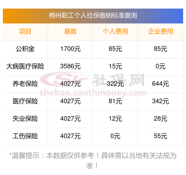五险一金扣多少?郴州五险一金扣多少钱?下表是2024-2025年郴州社保费用明细参考,新社通app-社保缴费查询工具提供的最新数据如下: