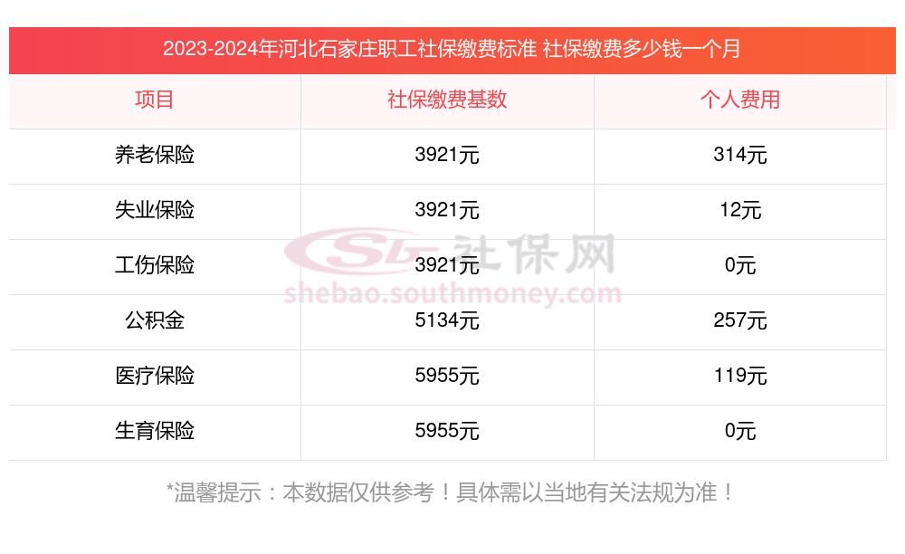 缴纳社保,简单来说,是个人和单位依据法律,向社会保险体系支付费用的过程。接下来看看,2025年河北石家庄社保个人缴费多少钱呢?2025年河北石家庄社保缴费基数最新标准公布?,如下: