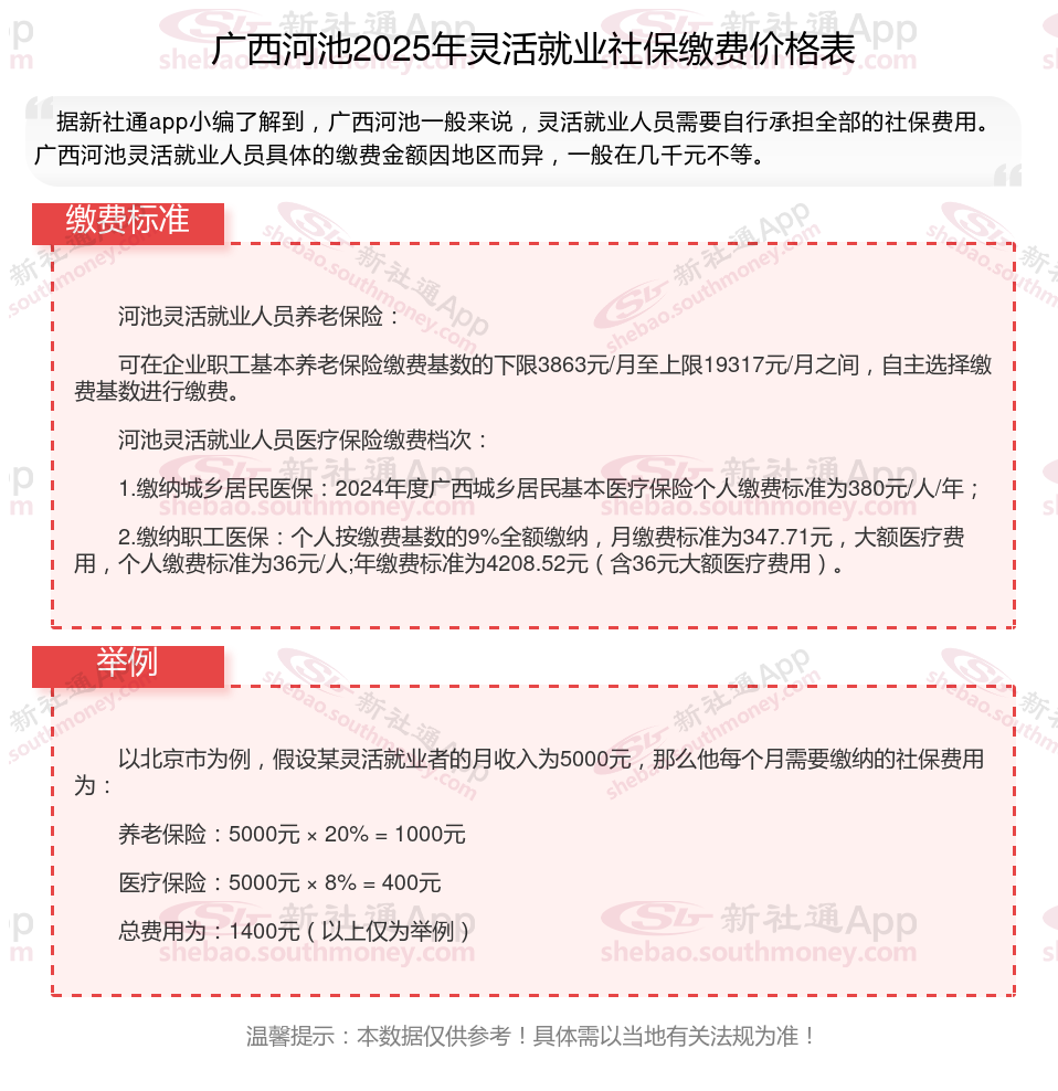 二、广西河池2024年灵活就业社保缴费基数、比例最新消息