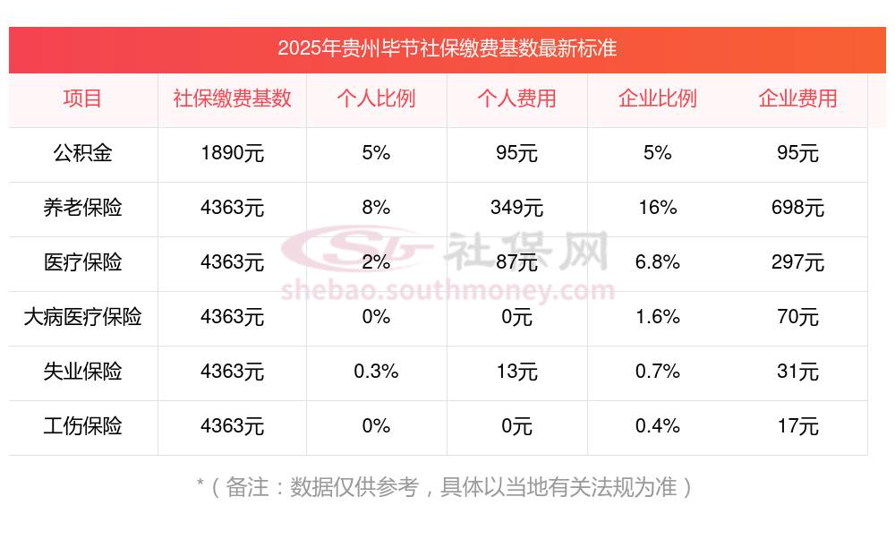 确定社保缴费数额的因素有多个,主要涉及缴费基数、缴费比例,以及当地在社保方面的具体法规。那么,2024-2025年贵州毕节社保缴费基数公布!个人要交多少钱?如下: