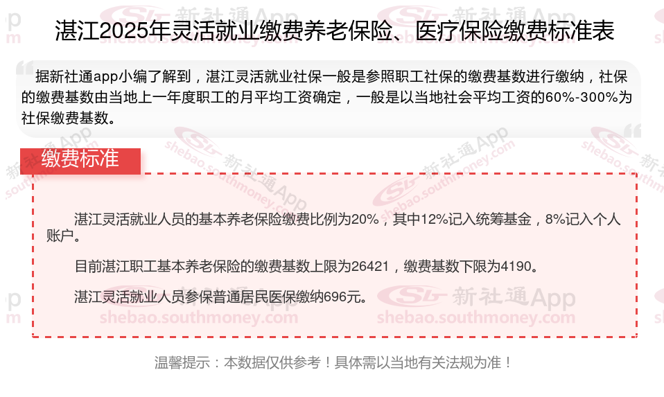 据新社通app数据显示,湛江企业灵活就业养老保险的缴费基数为:4190元。