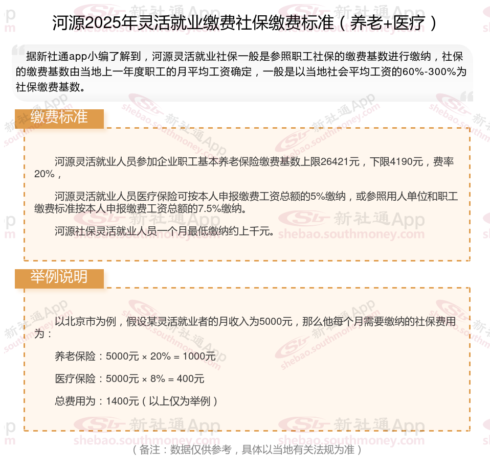 灵活就业社保缴费价格表来了!2024-2025年河源灵活就业人员社保需要缴费多少钱一个月?根据新社通app-社保缴费查询工具提供的最新数据如下: