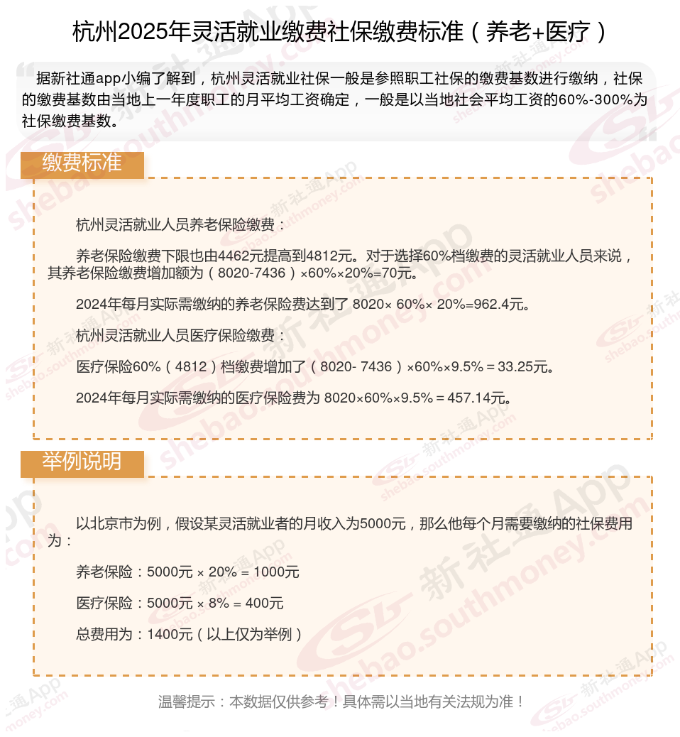 随着经济社会的不断发展,灵活就业群体不断地日益壮大,其社保缴费问题也愈发受到关注。那么2025年杭州灵活就业人员社保交多少钱,你了解2025年杭州灵活就业人员社保缴费基数及比例吗,接下来随新社通APP小编一起来看看。