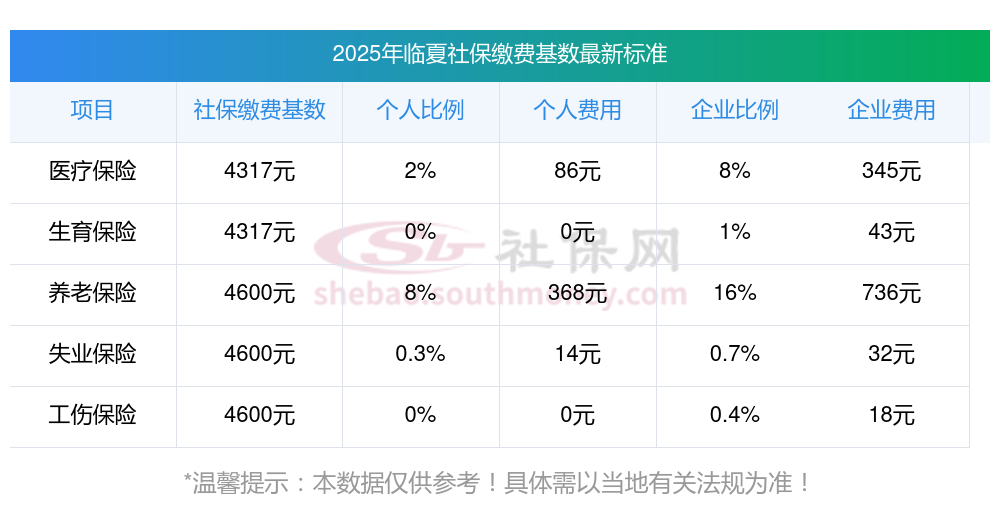 据新社通app显示,临夏社保缴费基数2025标准,(社保最低一个月要交多少钱)临夏社保费用如下: