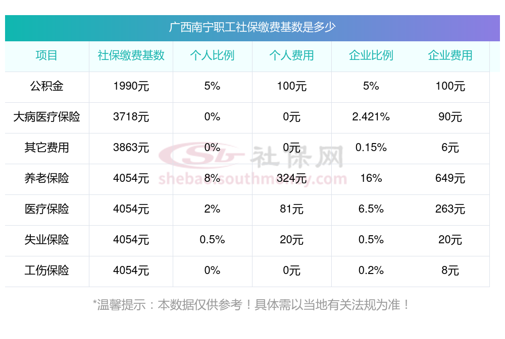 广西南宁的社保缴费情况,依据2025年最新的缴费标准,我们可以详细地进行如下说明。这些标准是根据新社通app-社保缴费查询工具提供的数据整理得出的:
