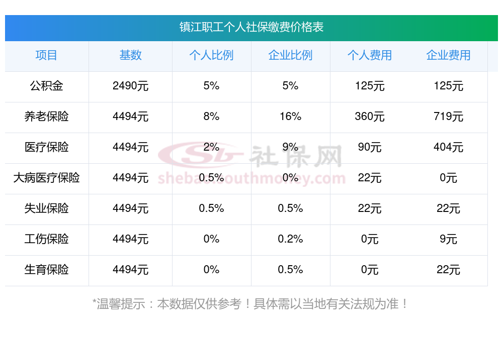 镇江缴费社保比例一览社保公司和个人各交多少?下表是2024-2025年镇江社保费用明细参考,新社通app-社保缴费查询工具提供的最新数据如下: