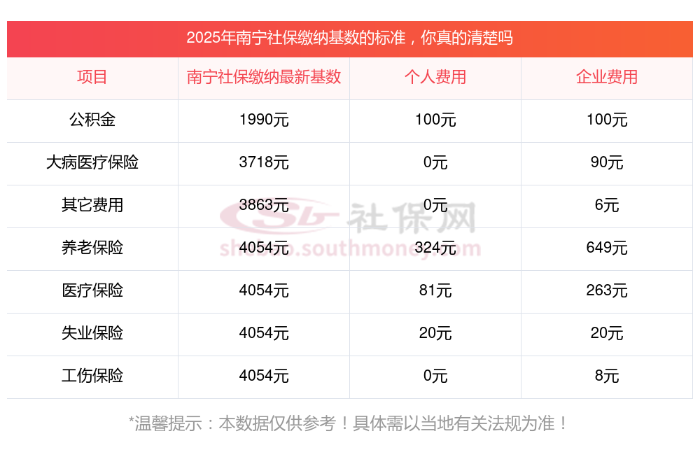 和新社通-app小编一起来了解下:南宁五险一金交多少钱一个月怎么算?2024-2025年南宁社保费用明细参考,新社通app-社保缴费查询工具提供的最新数据如下:
