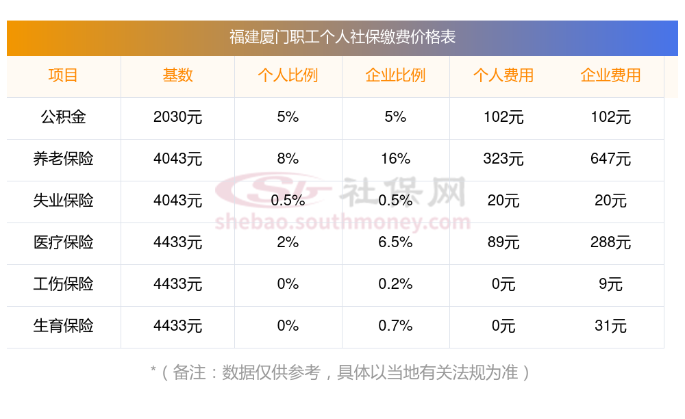 和社保网一起来了解下,五险一金实际有多少钱?以福建厦门社保缴费为例,2024-2025年福建厦门社保费用明细参考,新社通app-社保缴费查询工具提供的最新数据如下: