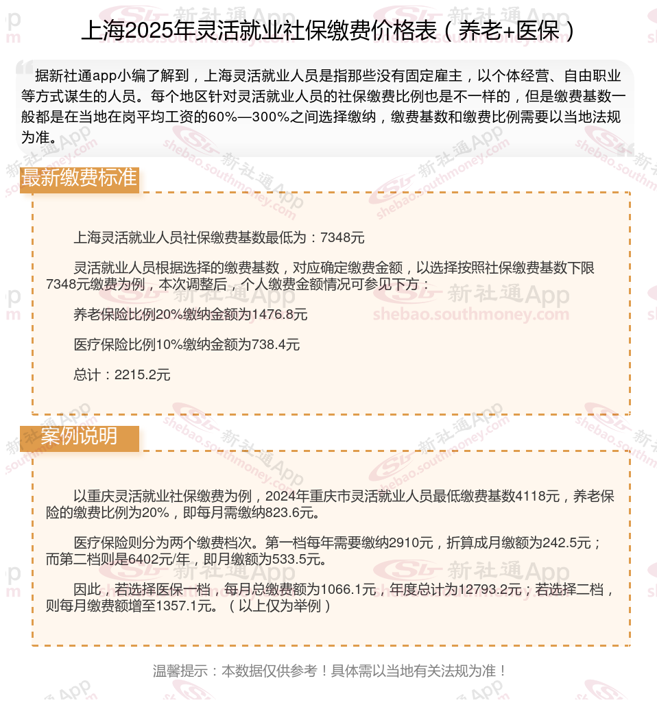 据新社通app数据显示,上海灵活就业养老缴费基数明细如下: