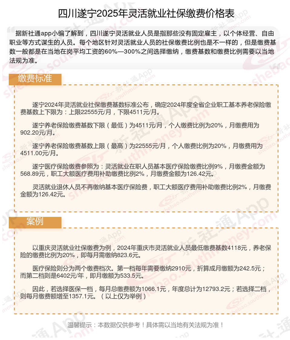 二、四川遂宁2024年灵活就业社保缴费基数、比例最新消息