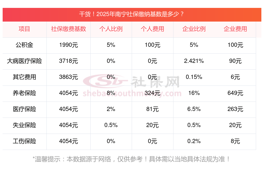 南宁社保缴费基数标准 2025年南宁社保是多少钱一个月?多种因素共同影响着社保的缴费金额,这其中就包括缴费基数、缴费比例,以及当地的具体法规。随新社通小编了解一下。