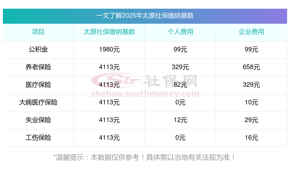 (1)据新社通小编了解到,社保缴费基数的确定主要依据职工上一年度的月平均工资,并结合当地社会平均工资的上下限(60%-300%)进行调整。 目前,太原社保缴费基数为:4113.00,个人费用约为:329.04元,企业费用约为:658.08元。