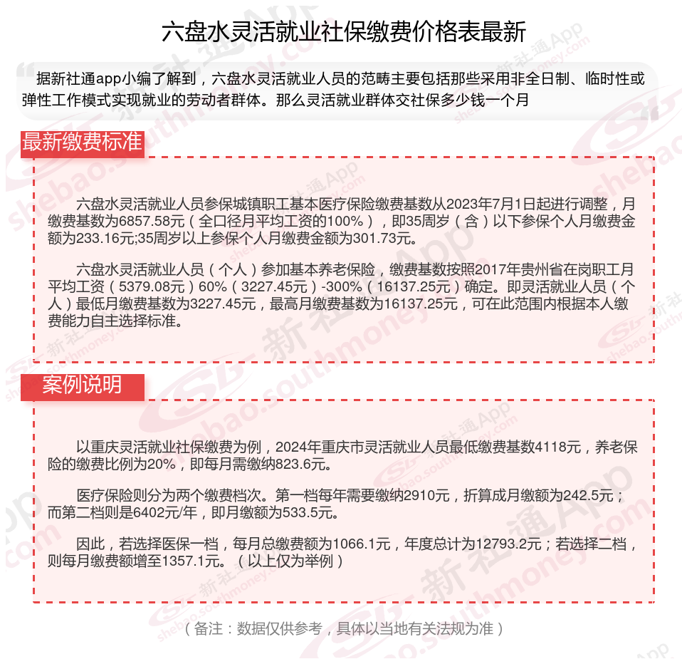 一、六盘水灵活就业社保缴费基数及比例最新消息