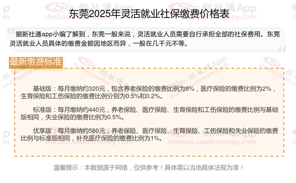 东莞2025年灵活就业人员社保缴费标准公布