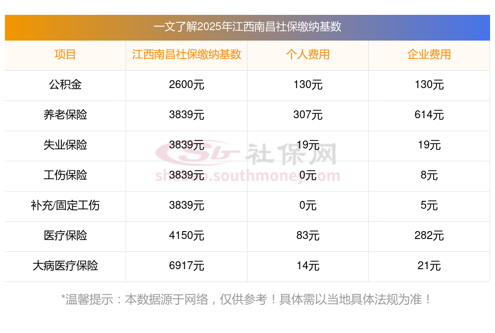 职工上一年1月至12月全部工资性收入所得的月平均额,确定了社保基数,而社保基数是计算缴纳社会保险费工资基数的依据。那么,2025年江西南昌社保缴费标准表,下面随新社通app小编一起来了解具体内容。