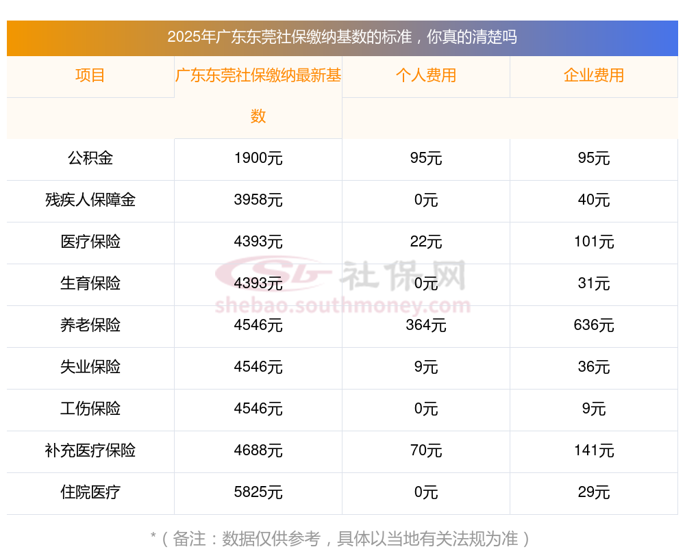 据新社通app显示,广东东莞社保缴费基数2025年标准,(社保最低一个月要交多少钱)广东东莞社保费用如下: