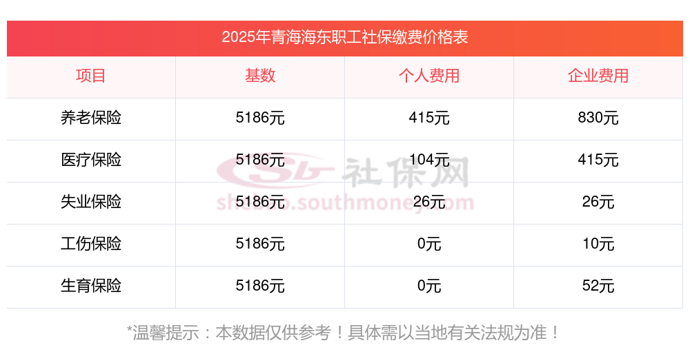 多个方面的因素影响着社保缴费金额,其中缴费基数、缴费比例,还有当地的相关法规都至关重要。接下来看看,最新!2025年青海海东社保缴费标准是多少钱,?如下: