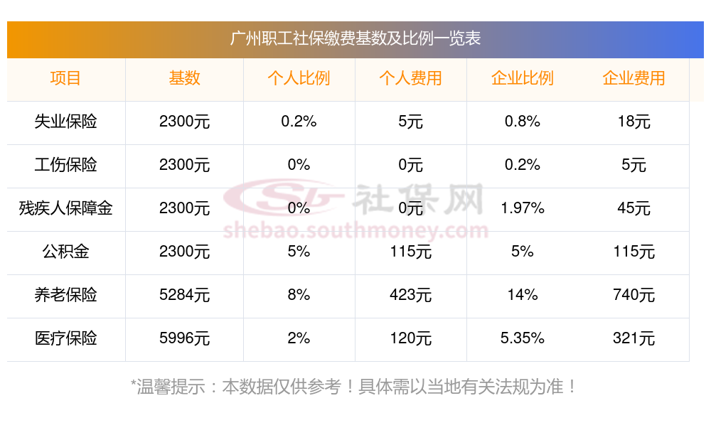 2025年广州社保缴费多少钱?下表是2024-2025年广州社保费用明细参考,新社通app-社保缴费查询工具提供的最新数据如下: