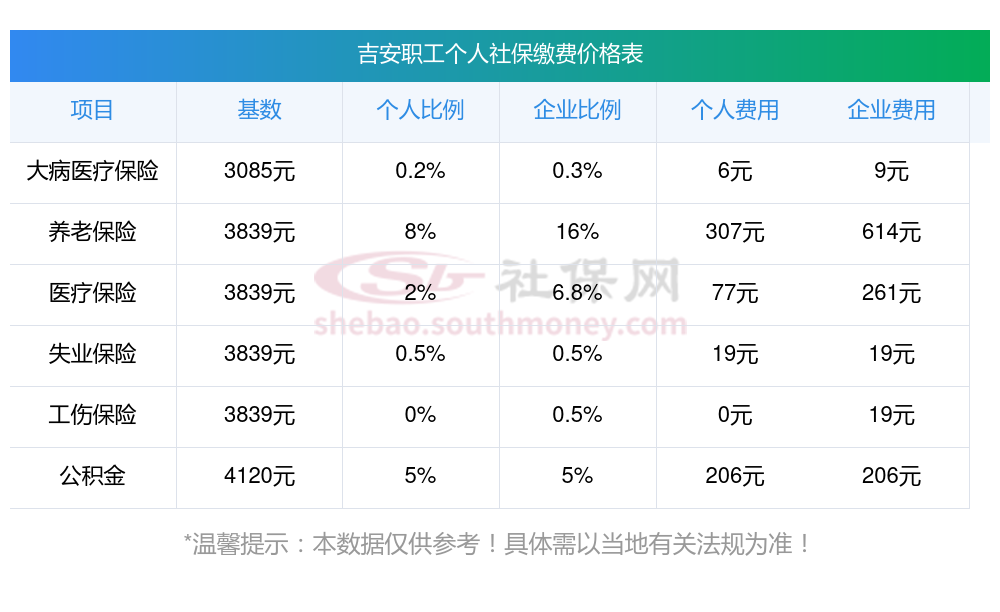 吉安社保缴纳比例公司和个人按照以下方式计算?: