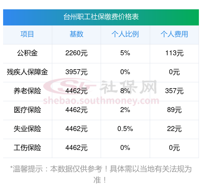 社保缴费价格表来了,看看你的台州社保交多少钱一个月?需要提醒的,各地的社保缴费基数和比例是不一样的,因此,社保每年要交多少钱也是因地而异的。