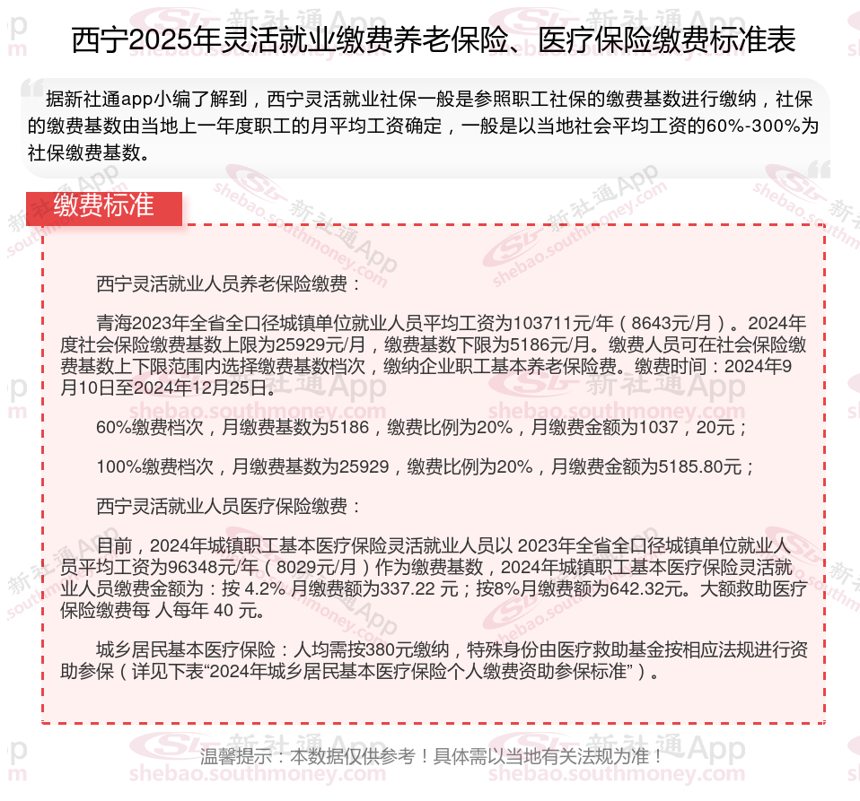社保一个月要交多少钱?西宁社保养老2024-2025年缴费标准表