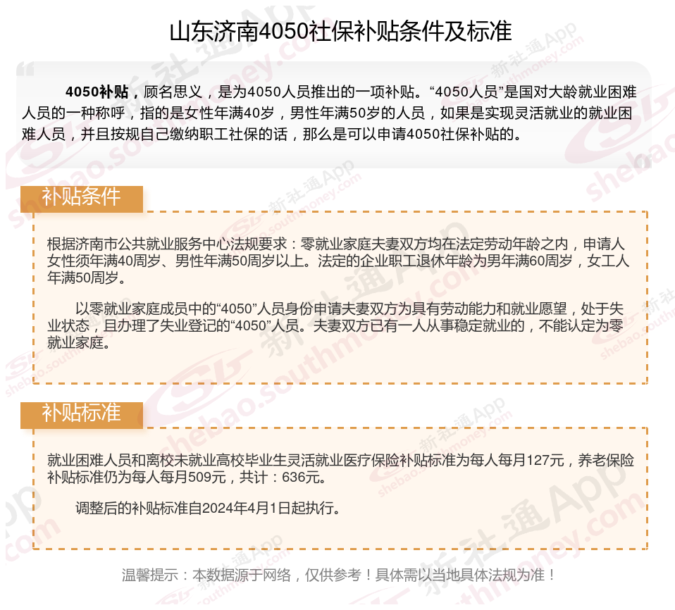 二、2025年山东济南4050社保补贴标准及条件,最新如下: